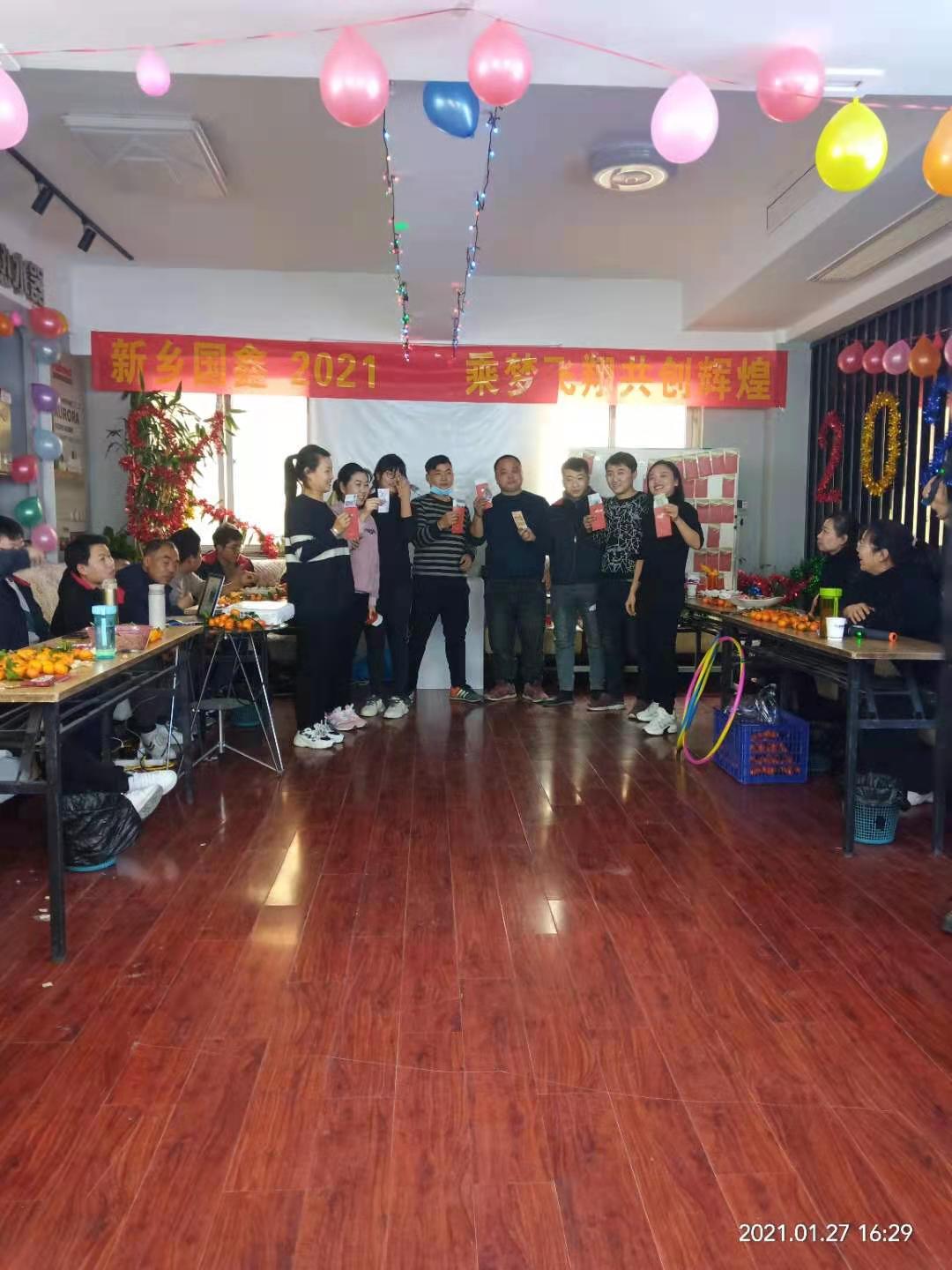 2021年127日新鄉國鑫全體員工參加了公司舉辦的2021年年會,會場上大家歡樂融融,積極參與,在場的同事們更是感受到了濃濃的節日氣氛。本次年會,融合了舞蹈、相聲、朗誦、口琴獨奏等各方面元素,節目精彩紛呈,游戲豐富有趣,紅包抽不停,給公司員工帶來了一場別開生面的視覺盛宴。整個年會會場氣氛活躍,讓員工在參加年會的同時,又收獲了一份感動,一份與企業心心相連的默契。